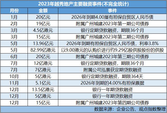 下半年以來,越秀地產(chǎn)于7月通過附屬公司泓景獲7億港元定期貸款融資;同月再獲一家銀行12億港元定期融資,期限為36個月;9月獲授6億港元定期貸款融資;10月獲5億港元定期貸款融資,期限364天。