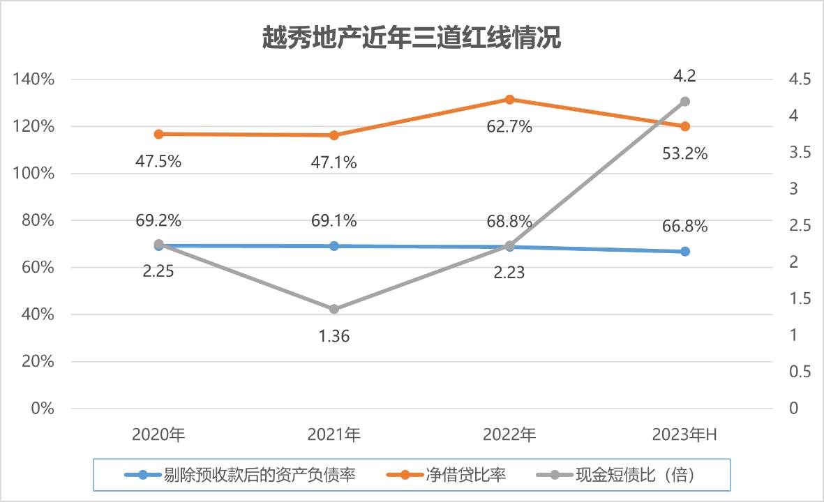 同期末,剔除預(yù)收款后的資產(chǎn)負(fù)債率、凈借貸比率和現(xiàn)金短債比分別為66.8%、53.2%,有所改善。但主要是因為行業(yè)變化,令越秀地產(chǎn)管理層更多關(guān)注在尋求增長之際對債務(wù)杠桿實施主動管理。