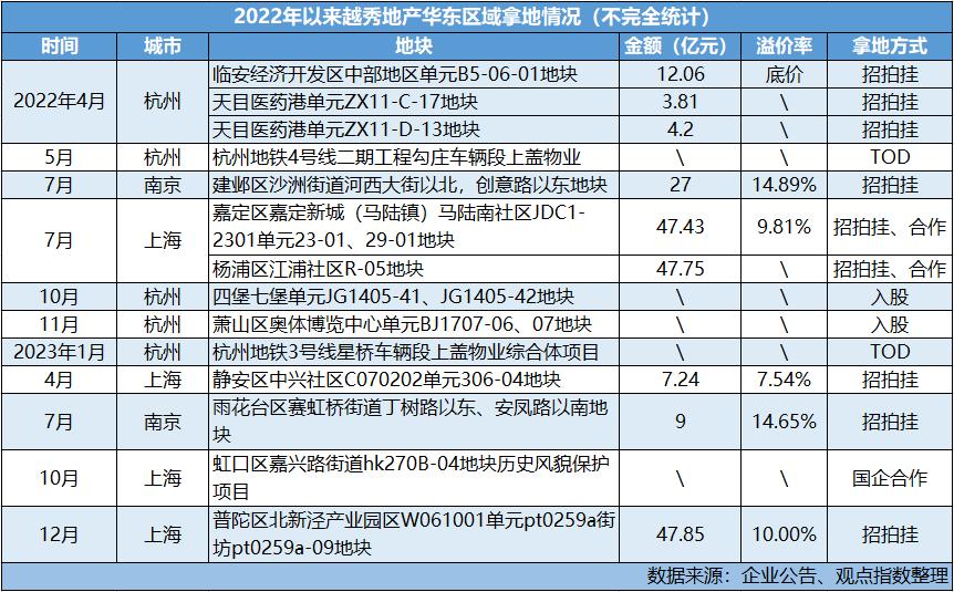 回顧近兩年越秀在華東的拿地情況,該公司將廣州區(qū)域運用純熟的“招拍掛+TOD+國企合作”的多樣化模式,逐漸在華東區(qū)域落地。