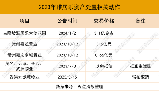 2023年雅居樂大部分資產(chǎn)處置預(yù)計錄得賬面虧損,但能換取一定的現(xiàn)金回籠已屬不易。目前,兩個境外項目轉(zhuǎn)手尚未完成。