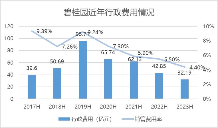 最新財(cái)報(bào)顯示,碧桂園2023年行政費(fèi)用開(kāi)銷總額已較此前幾年有了大幅降低,上半年下降至32.19億元,低于過(guò)往六年同期水平,較2020年更是折半。
