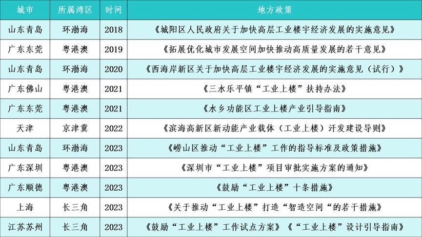 因此,多數(shù)灣區(qū)城市探索“工業(yè)上樓”模式時(shí),紛紛學(xué)習(xí)深圳經(jīng)驗(yàn),并加以改進(jìn)消化、因地制宜的開展項(xiàng)目試點(diǎn)。