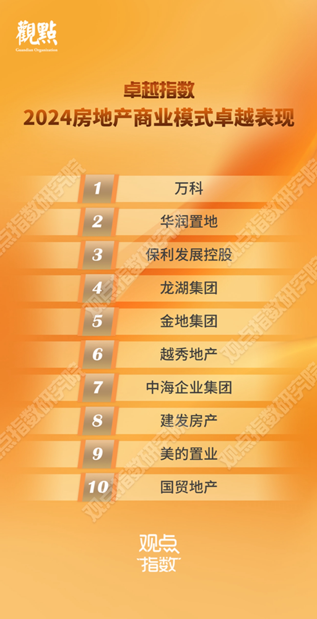 從研究成果來看,前三位分別是萬科、華潤(rùn)置地和保利發(fā)展控股,緊隨其后的是龍湖集團(tuán)和金地集團(tuán)。