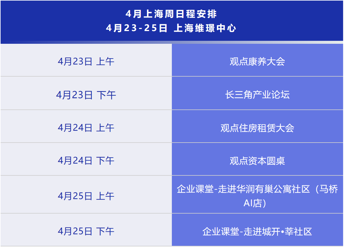 4月23-25日,觀點上?;顒又茉谏虾>S璟中心即將揭幕,康養(yǎng)、產(chǎn)業(yè)、租賃、金融四大業(yè)態(tài)大咖悉數(shù)到場,并與數(shù)百行業(yè)高層面對面,用思想來對話,用面對面的交流為行業(yè)及企業(yè)找出可以繼續(xù)并長期發(fā)展的商業(yè)機(jī)會!