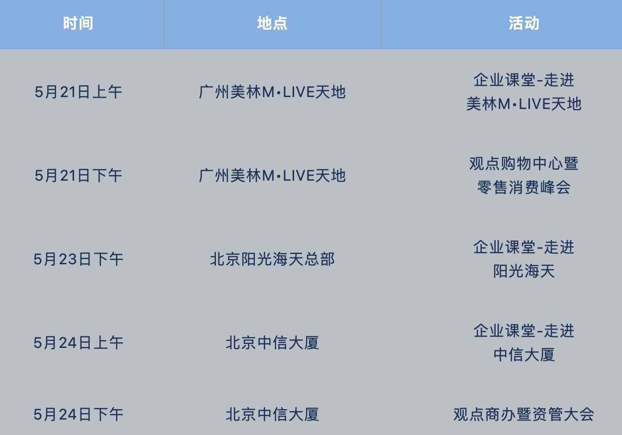 從廣州到北京,觀點5月商業(yè)周即將啟航,購物中心、零售品牌、商辦大咖云集,通過分享與交流,抓住商機,尋覓商業(yè)價值!