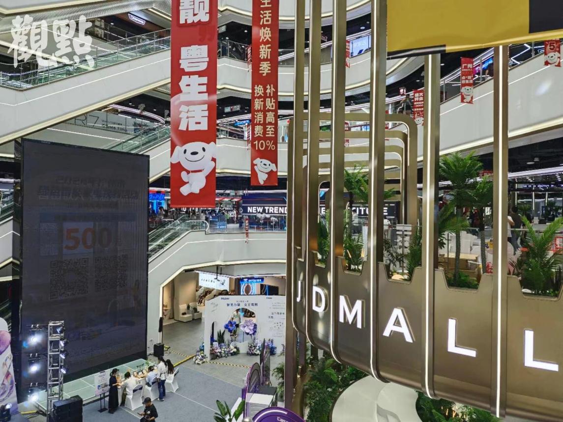 作為2023年海珠區(qū)重點(diǎn)招商引資項(xiàng)目,京東mall進(jìn)展迅速。同年9月,工控科產(chǎn)向京東交付場(chǎng)地。不到一年后,經(jīng)過(guò)重新布局和裝修,商場(chǎng)在2024年“五一”上線。