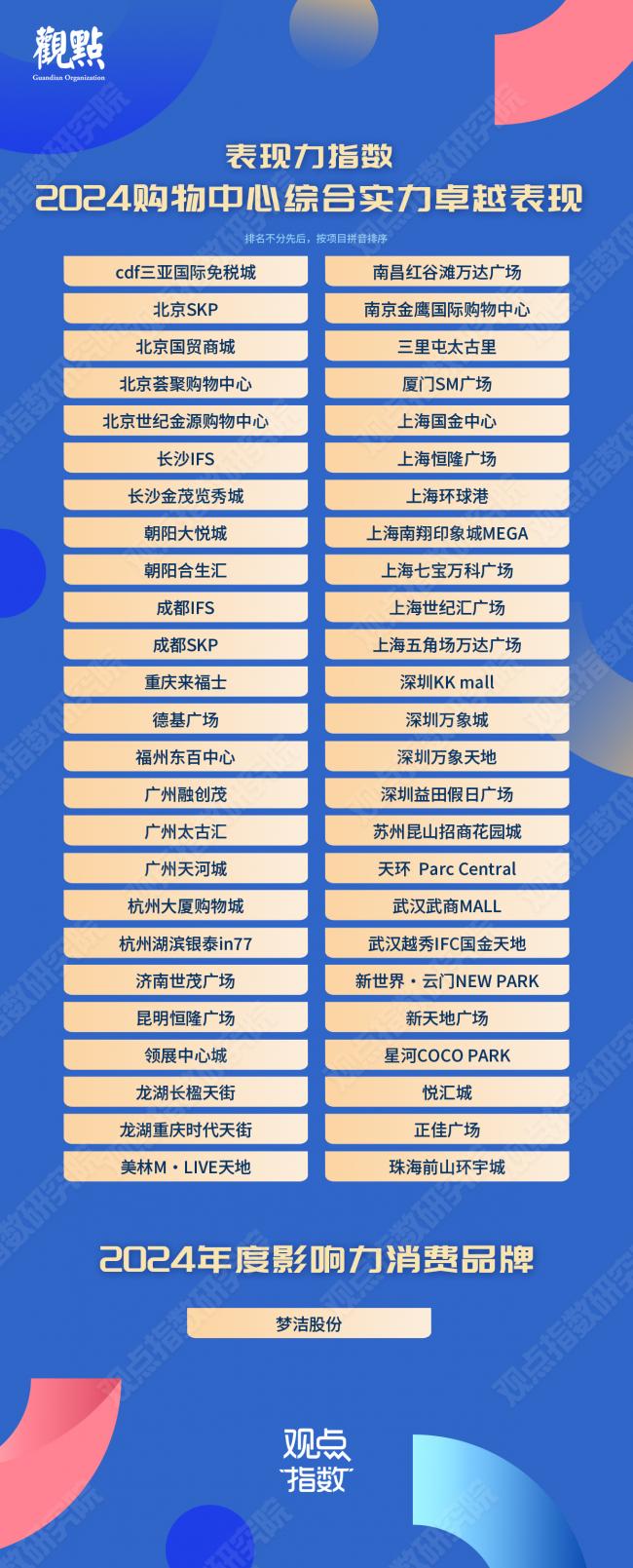 觀點(diǎn)指數(shù)總結(jié)過去一段時(shí)間購物中心以及零售消費(fèi)品牌的發(fā)展,發(fā)布“表現(xiàn)力指數(shù) ? 2024購物中心綜合實(shí)力卓越表現(xiàn)”、“2024年度影響力消費(fèi)品牌”,給行業(yè)的可持續(xù)發(fā)展探索提供樣本。