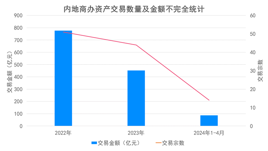 Wind統(tǒng)計數(shù)據(jù)顯示,2023年到2024年4月,國內(nèi)CMBS+類REITs產(chǎn)品成功發(fā)行132宗,總發(fā)行金額為2164.15億元,其中CMBS發(fā)行72宗,總發(fā)行金額為1069.72億元,類REITs產(chǎn)品發(fā)行60宗,總發(fā)行金額為1094.43億元。