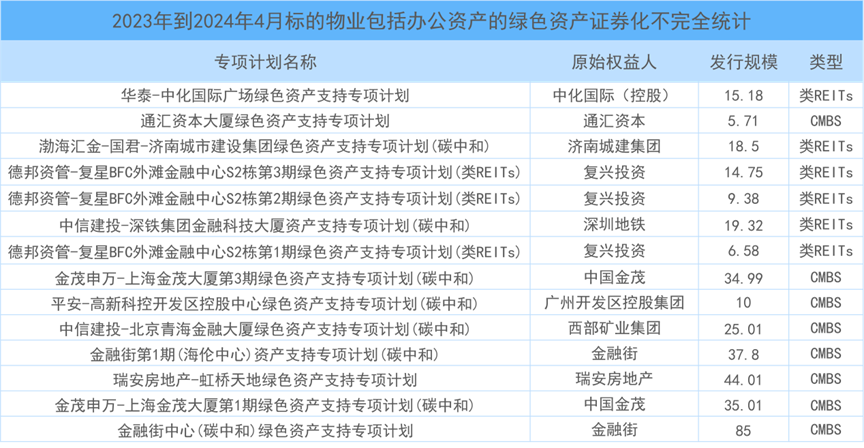 而其中包括金融街中心(碳中和)綠色資產(chǎn)支持專項計劃、金茂申萬-上海金茂大廈第1期綠色資產(chǎn)支持專項計劃(碳中和)、中信建投-深鐵集團(tuán)金融科技大廈資產(chǎn)支持專項計劃(碳中和)等在內(nèi)的多個產(chǎn)品均是碳中和債券,可以發(fā)現(xiàn)企業(yè)對寫字樓碳中和債券產(chǎn)品的關(guān)注度不減。