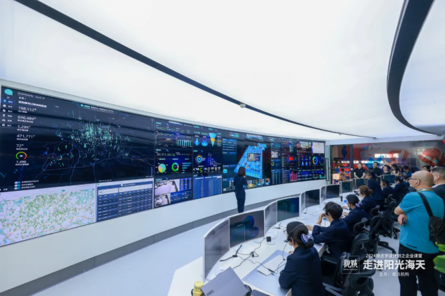 在講解人員的陪同下,企業(yè)課堂的學(xué)員們一同參觀了位于陽光海天總部一樓的陽光海天數(shù)智化管理中心。依托人工智能和大數(shù)據(jù)技術(shù),陽光海天將智慧化、移動化與停車管理系統(tǒng)緊密結(jié)合,重新定義智慧停車。