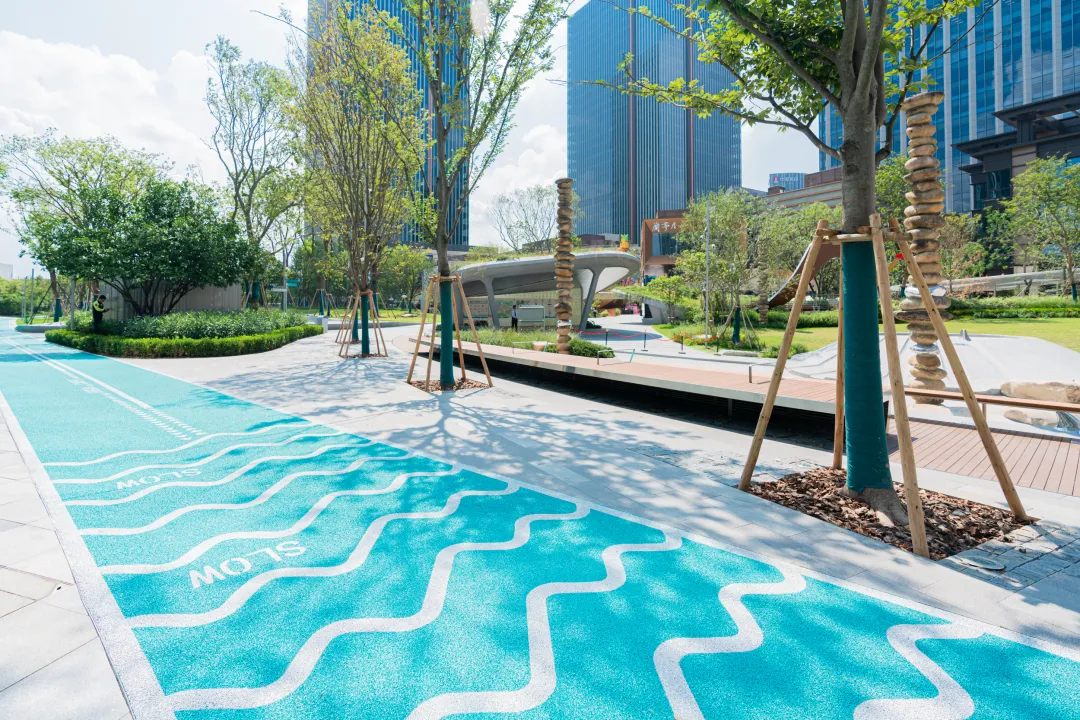 這個(gè)約10萬(wàn)平方米的巨型商業(yè)綜合體,最突出的亮點(diǎn)之一,便是自帶約7萬(wàn)平方米的綠軸。擁有市區(qū)罕見的超大面積城市公園,圍繞著“城市地毯 眾在自然”,為市民提供一片開放、活力、便捷、舒適的親自然空間。