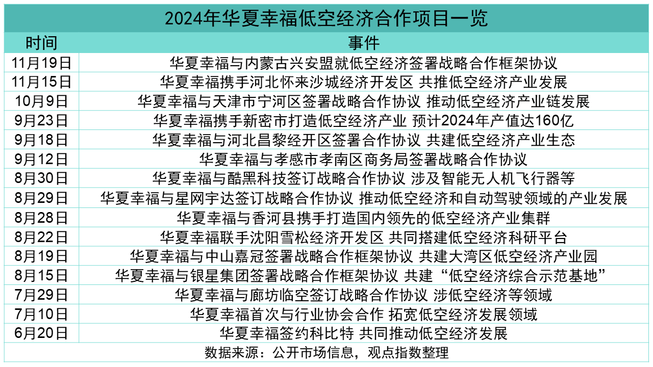 在推動(dòng)新質(zhì)生產(chǎn)力發(fā)展的大背景下,低空經(jīng)濟(jì)同樣是不容忽視的領(lǐng)域,期內(nèi)華夏幸福多次布局低空經(jīng)濟(jì)賽道。