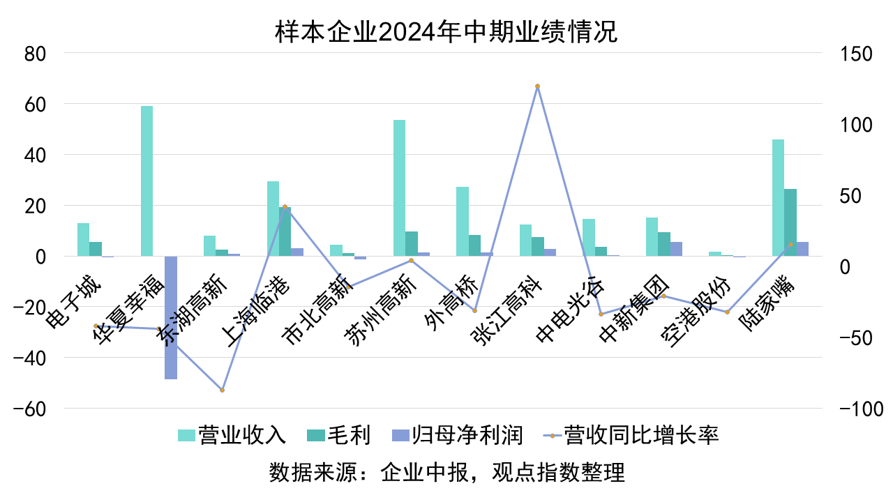 其中營(yíng)收同比降幅較大的分別為東湖高新、電子城及中電光谷等,歸母凈利潤(rùn)變化較大的則為市北高新、電子城及外高橋,企業(yè)對(duì)此的解釋大多為宏觀經(jīng)濟(jì)原因?qū)е滦枨笫湛s,進(jìn)而讓業(yè)績(jī)承壓。