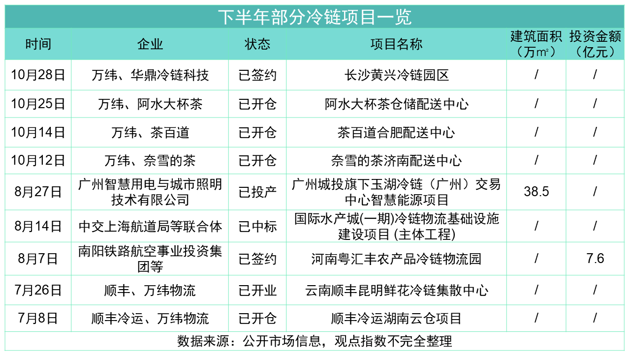 此外值得注意的是,年內各類新開工、開倉的冷庫項目數(shù)量持續(xù)增加,投資熱度不減。