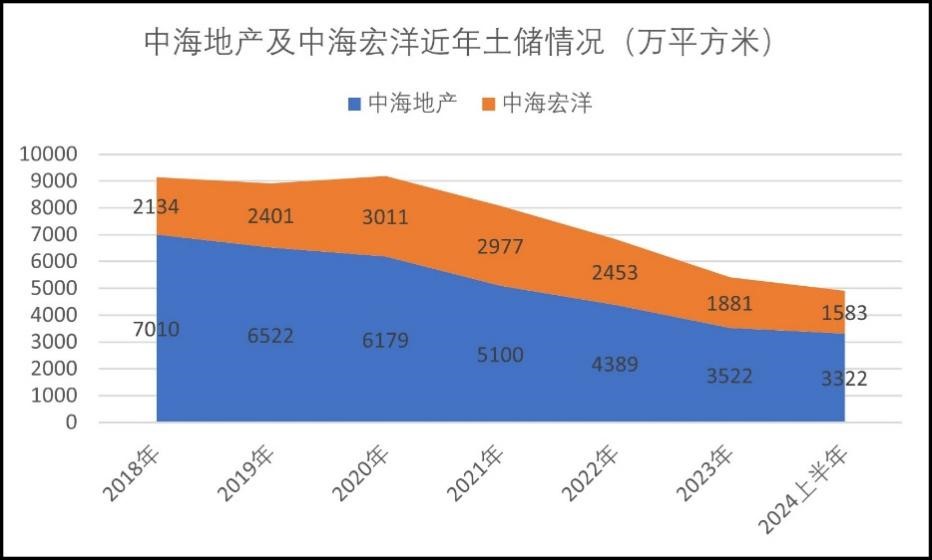 可以看出,無論是中海地產(chǎn)或是中海宏洋,這幾年拿地規(guī)模都在下降。