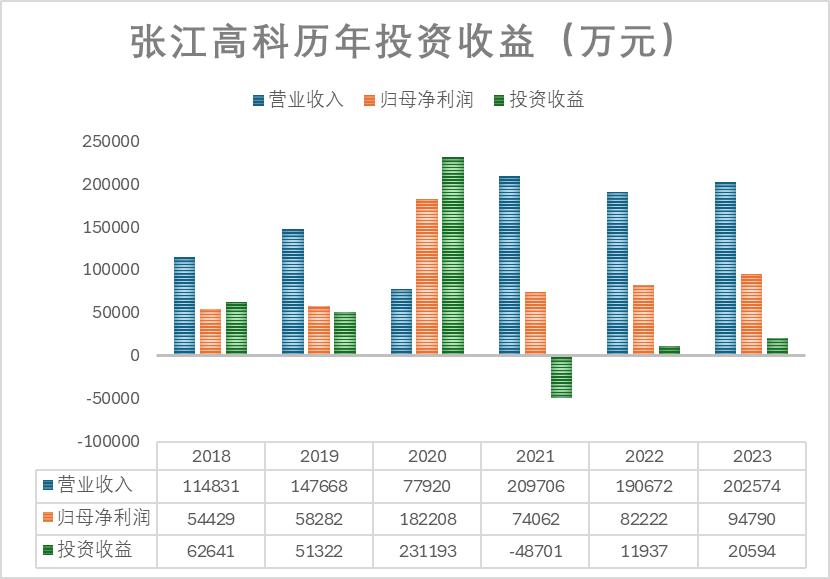 從2018年至2023年,張江高科投資收益分別為6.26億元、5.13億元、23.12億元、-4.87億元、1.12億元和2.05億元。