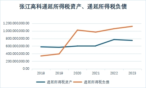 二者雖然都計入利潤,但稅務(wù)處理也有差別。相較于投資收益,公允價值變動本身并不上稅,而是需要在報告期末確認遞延所得稅資產(chǎn)(公允價值變動損益為負)和遞延所得稅負債(公允價值變動損益為正),張江高科2018年至2023年的遞延所得稅負債分別為3.4億元、3.96億元、10.24億元、9.7億元、10.6億元和11.22億元,和公允價值變動損益的曲線大致吻合。