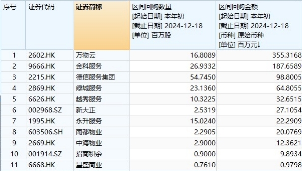 截止2024年12月18日物企回購情況,圖片來源:Wind數(shù)據(jù) 觀點指數(shù)整理