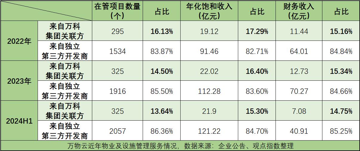 數(shù)據(jù)顯示,萬物云近年來自萬科集團關(guān)聯(lián)方的各種項目數(shù)量及收入均呈現(xiàn)收縮趨勢。