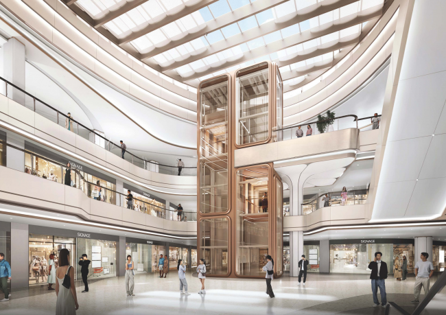 作為項(xiàng)目內(nèi)部動線及街區(qū)動線交匯的核心,室內(nèi)中庭的設(shè)計(jì)往往是商業(yè)項(xiàng)目的重頭戲。中關(guān)村ART PARK大融城在主中庭設(shè)置了觀光直梯,采用透明玻璃井道設(shè)計(jì),確保整體視野通透;玻璃穹頂既減少了內(nèi)部空間的壓迫感,又利于光線穿透,營造出開闊、舒適的空間氛圍。未來,這一開放空間還將被充分利用,規(guī)劃舉辦豐富多彩的活動,包括藝術(shù)展覽、文化節(jié)、科技展示、限時(shí)快閃店以及文化沙龍和專題講座等,為訪客帶來更多首展、首秀體驗(yàn),進(jìn)一步提升項(xiàng)目的吸引力和活力。