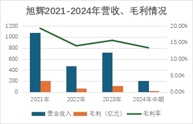 呈現(xiàn)在業(yè)績(jī)上,2024上半年,旭輝實(shí)現(xiàn)營(yíng)業(yè)收入202.06億元,同比下降約35.5%;毛利約27.08億元,同比減少約45%;毛利率約13.4%,2023年同期為15.8%;股東應(yīng)占溢利為虧損49.4億元。