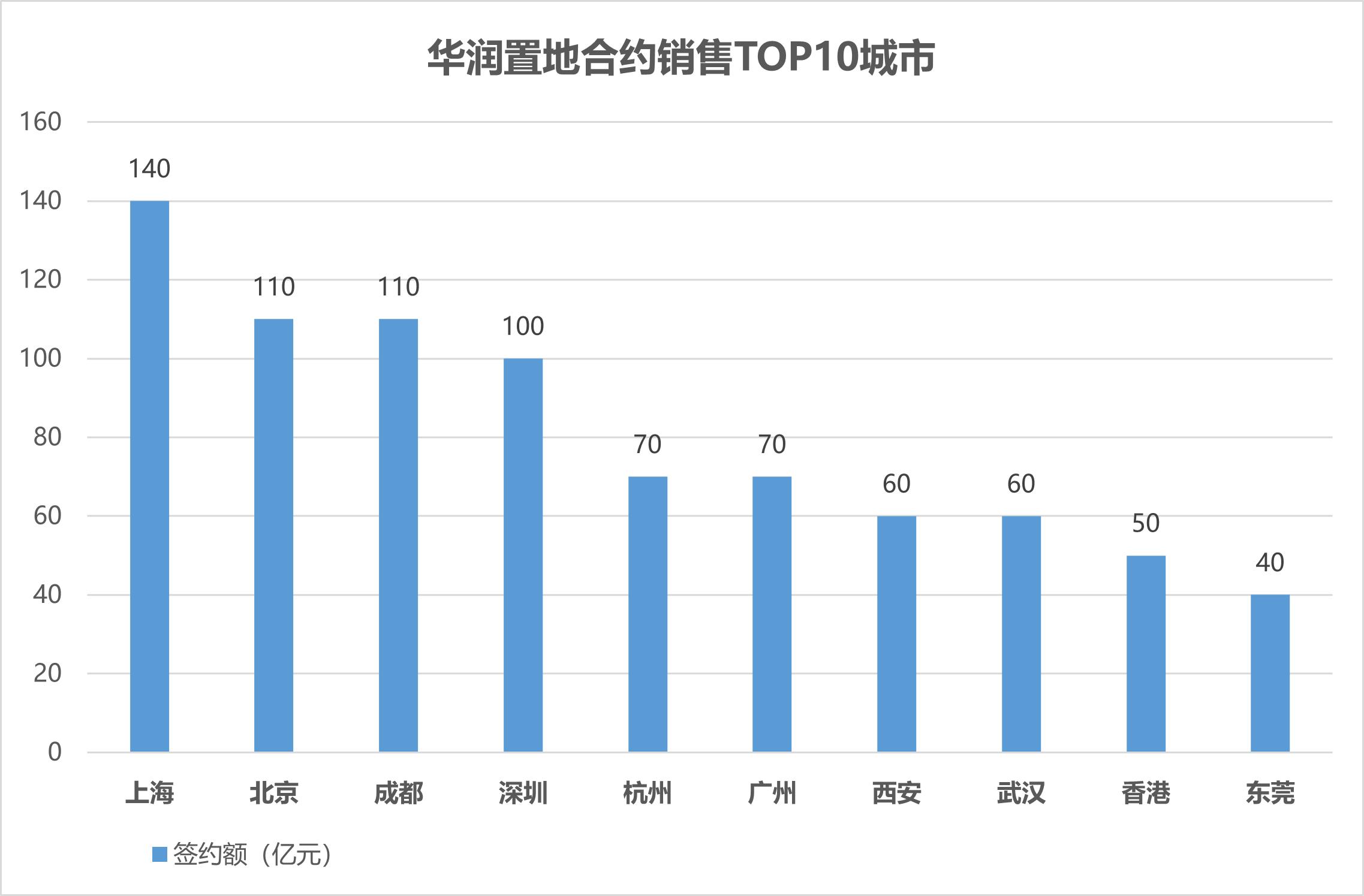 具體到前5個表現(xiàn)最突出的城市,華潤置地在上海保持了行業(yè)TOP3地位。