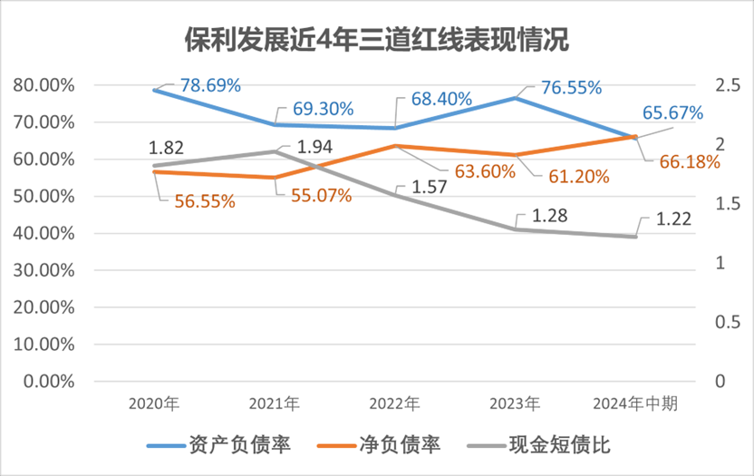 值得指出,保利發(fā)展近年來資產(chǎn)負債結(jié)構(gòu)一直處于優(yōu)化當中,也一直保持在三道紅線的綠檔水平。