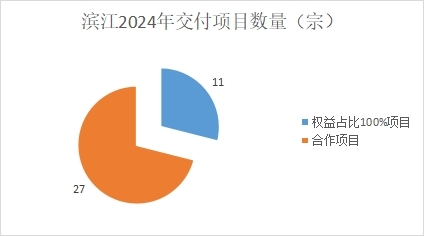 與銷售端口相似的還有交付端,濱江集團(tuán)2024年計(jì)劃交付的38個(gè)項(xiàng)目中,僅11宗項(xiàng)目為100%權(quán)益占比,剩余27宗項(xiàng)目均為合作項(xiàng)目,權(quán)益占比最低27.55%(濱萃悅府項(xiàng)目),最高80%(觀翠攬?jiān)萝帲?/p>