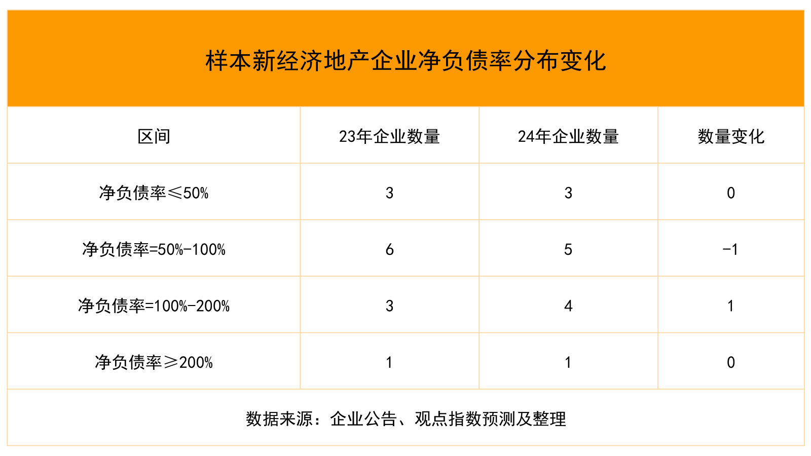 從凈負(fù)債率分布變化上看,2024年樣本房企整體凈負(fù)債率有上升趨勢。