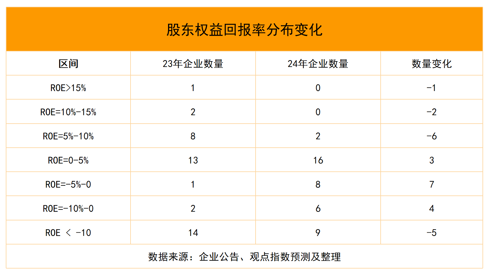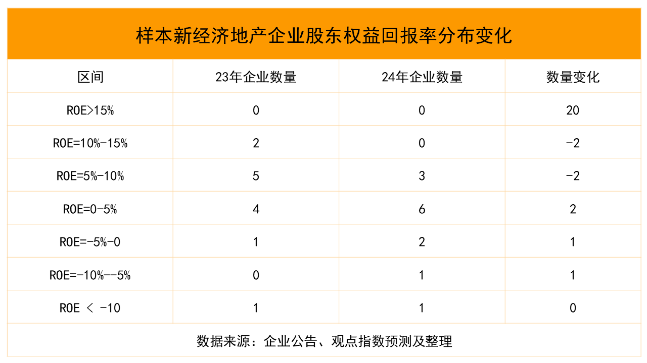 從股東權(quán)益回報率的分布上看,2024年上市房企盈利能力表現(xiàn)趨同并且趨勢并不樂觀。