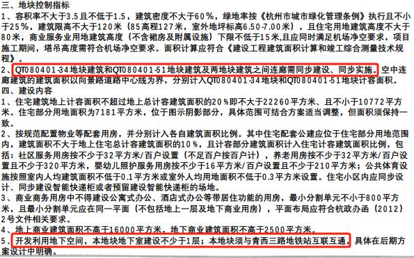 同時(shí),兩地塊的建設(shè)用地規(guī)劃條件中均明確指出,“QT080401-34地塊建筑和QT080401-5地塊建筑及兩地塊建筑之間連廊需同步建設(shè)、同步實(shí)施”,且“本地塊地下室建設(shè)不少于1層;本地塊須與青西三路地鐵站互聯(lián)互通”。