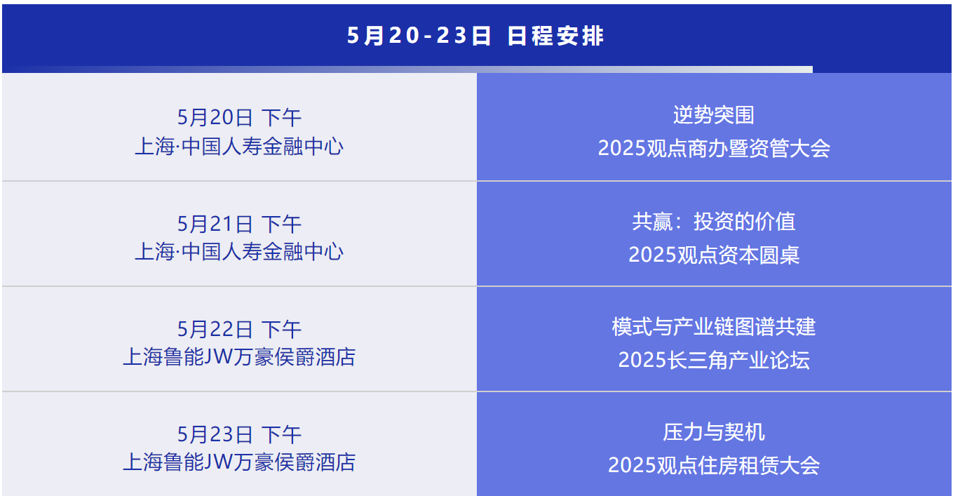 急所有人之急,為行業(yè)所需解困。5月20-23日,觀點機構(gòu)迅速集合商辦、產(chǎn)業(yè)及物流園區(qū)、住房租賃及資本金融四大領(lǐng)域頂流企業(yè)、政府平臺公司、高新區(qū)及資本金融高層、管理層齊聚上海,將對接下來的經(jīng)濟走勢、四大領(lǐng)域各自的發(fā)展趨勢進行深度剖析,并讓各代表性企業(yè)講出自己的最佳戰(zhàn)略布局、最優(yōu)投資與發(fā)展模式,同時,打通資源合作通道,共同攜手前行。