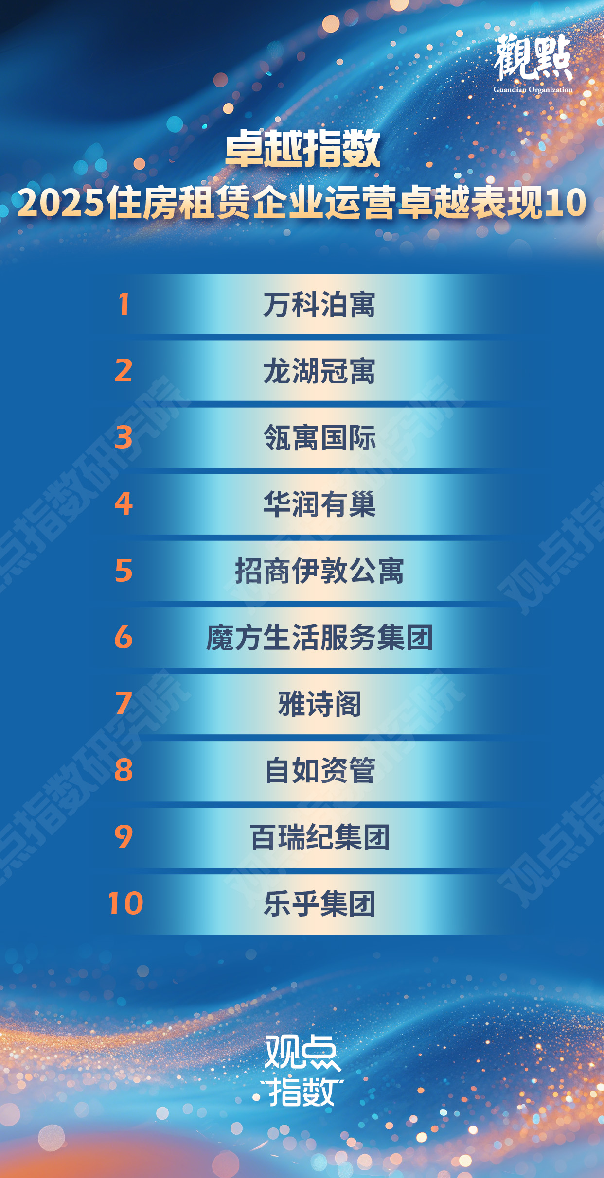 萬(wàn)科泊寓、龍湖冠寓、瓴寓國(guó)際、華潤(rùn)有巢、招商伊敦公寓、魔方生活服務(wù)集團(tuán)、雅詩(shī)閣、自如資管、百瑞紀(jì)集團(tuán)以及樂(lè)乎集團(tuán)10家企業(yè)脫穎而出。