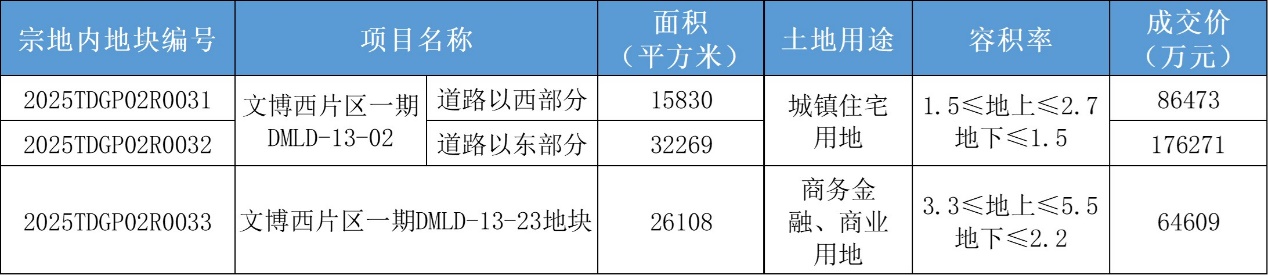 據(jù)悉,該組團(tuán)共包含兩幅城鎮(zhèn)住宅用地及一幅商務(wù)金融、商業(yè)用地,總起始價(jià)約29.47億元。其中,住宅用地分為文博西片區(qū)一期西地塊和東地塊,對(duì)應(yīng)出讓面積15830平方米、32269平方米,地塊容積率均為2.7,樓面起始價(jià)約18211元/平方米。商務(wù)金融地塊容積率5.5,起始價(jià)58155萬(wàn)元。