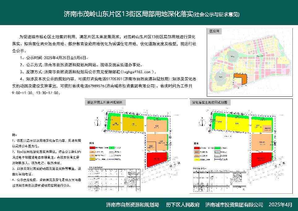 但顯然后續(xù)沒能順利“上架”,直到今年4月,濟(jì)南市自然資源和規(guī)劃局對(duì)地塊所在的歷下區(qū)茂嶺山東片區(qū)13街區(qū)局部用地進(jìn)行深化落實(shí),并向社會(huì)公示及征求意見。