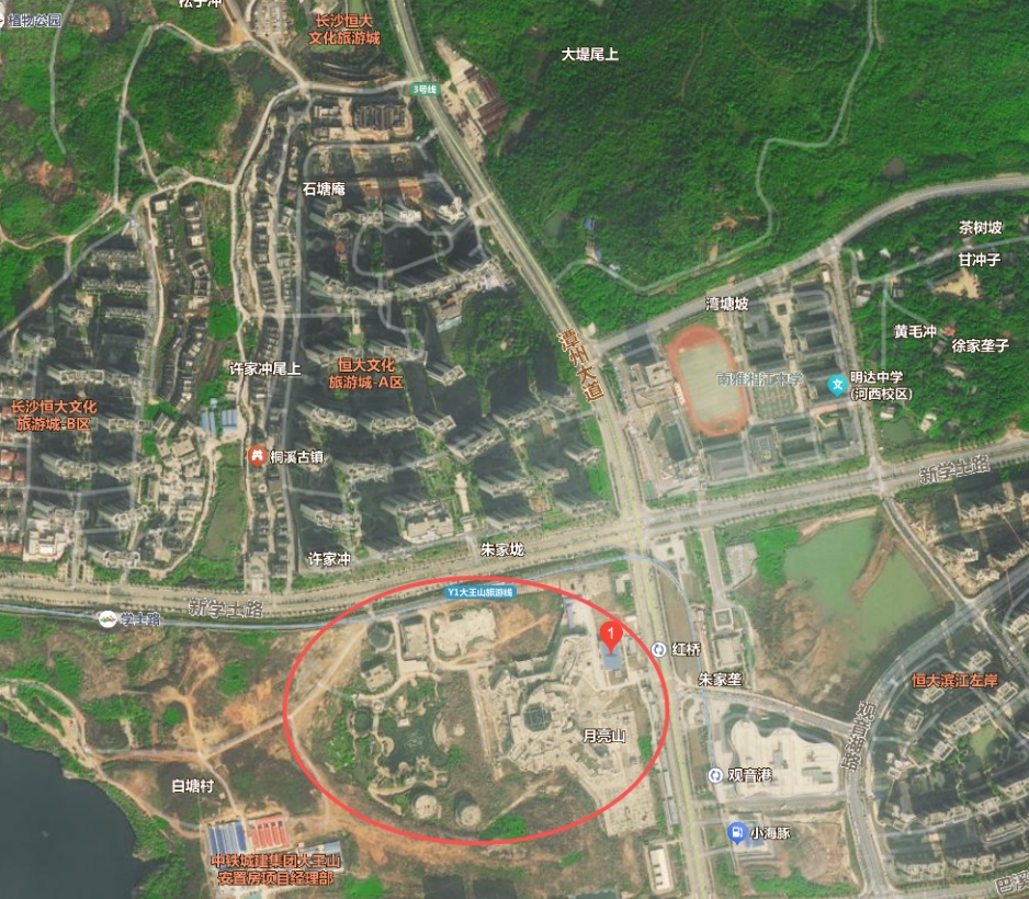 根據(jù)交易公告,拍賣標的為“長沙恒大童世界旅游開發(fā)有限公司名下三宗娛樂康體用地及地上在建工程、附著物”,三幅地塊總面積約17.2萬平方米,土地性質(zhì)為娛樂康體用地,土地使用期限至2056年12月6日屆滿。