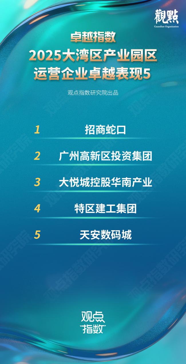 招商蛇口、廣州高新區(qū)投資集團(tuán)、大悅城控股華南產(chǎn)業(yè)、特區(qū)建工集團(tuán)、天安數(shù)碼城等企業(yè)憑借突出表現(xiàn)入選。