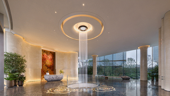 讓建筑、生活與自然無界融合的全維立體景觀,是貝宸S1另一項(xiàng)特色?;诖髷?shù)據(jù)洞察與潛在客戶調(diào)研,項(xiàng)目早期確立了“風(fēng)景里的家”的景觀設(shè)計(jì)目標(biāo),并對(duì)主入口、下沉庭院、開敞式架空層、單元大堂及第五立面(建筑屋頂面)等空間進(jìn)行立體景觀設(shè)計(jì),引入兩百余種特色植物、千余噸天然石材,讓貝宸S1的景觀體驗(yàn)充滿“雖由人作,宛自天開”的自然野奢感。