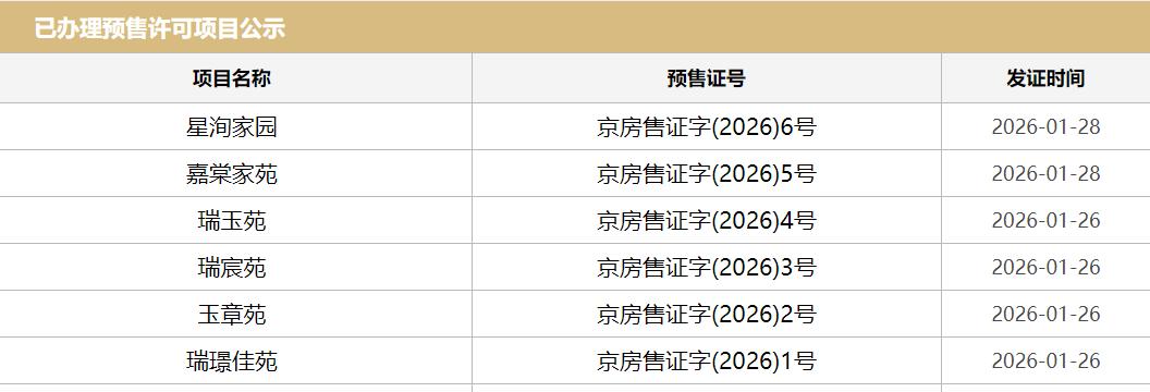 這兩個項目分別是1月26日取證的瑞璟佳苑(推廣案名暫未公布),以及1月28日取證的嘉棠家苑(推廣案名“嘉棠璟樾”),分別位于海淀與豐臺。