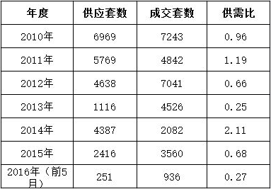 2010-2016年度海淀區(qū)住宅供需情況:
