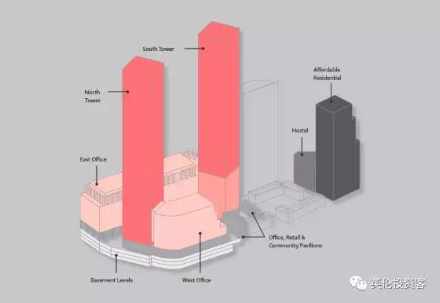 圖中的2幢超高層大樓即為富力Vauxhall項(xiàng)目建成效果圖