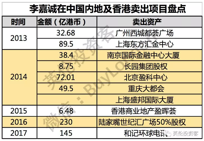 李嘉誠套現(xiàn)大陸香港(英倫投資客制圖)