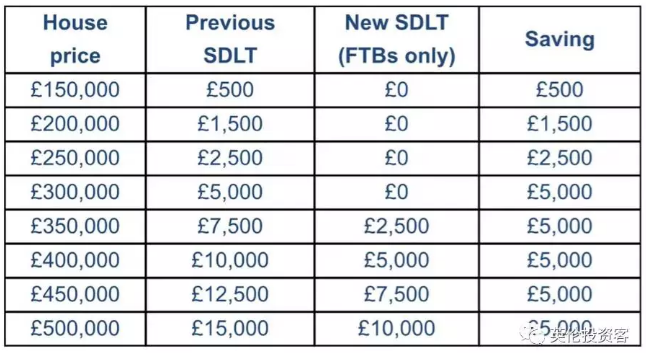對于首次購房者,如果購買30萬英鎊以下的房產(chǎn),直接免除所有印花稅。