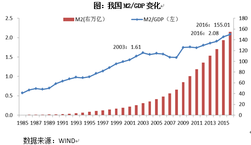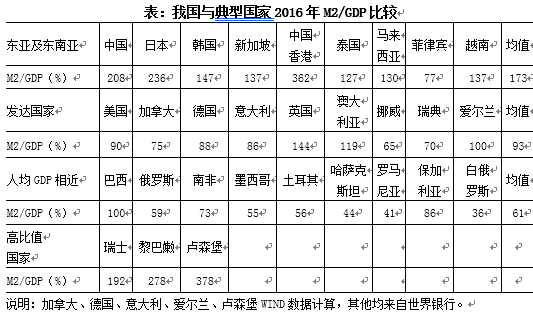 從國家來看,2016年,我國M2/GDP為208%,只低于日本的236%、盧森堡的378%,顯著高于絕大部分國家的水平。