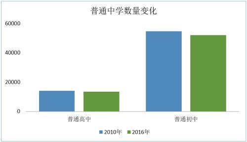 不僅如此,普通初中從54823所減少到52118所,普通高中從14058所減少到13383所。
