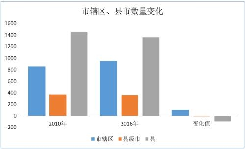 六年間,縣減少了95個(gè),市轄區(qū)增加了101個(gè),市區(qū)范圍不斷擴(kuò)大,人口越聚越多。