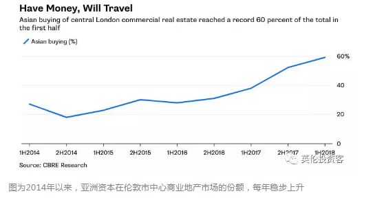 彭博數(shù)據(jù)顯示,2018年以來倫敦共有價(jià)值72.3億英鎊的寫字樓經(jīng)歷了換手,其中60%的項(xiàng)目被亞洲買家拿下。