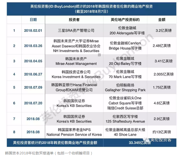 我在《韓國人超10億英鎊買下倫敦高盛大樓,比中國更壕的金主來了》文章中盤點(diǎn)過韓國人今年以來在倫敦房地產(chǎn)市場的投資,總共花掉了33億英鎊,差不多是中國內(nèi)地投資者的3倍(11.39億英鎊)。
