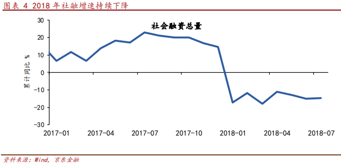 ·社會(huì)融資增速不及預(yù)期。今年以來(lái),社會(huì)融資總量增速持續(xù)下滑。這一方面與前期去杠桿政策相關(guān),另一方面與實(shí)體經(jīng)濟(jì)下滑,項(xiàng)目資源受限,融資需求降低有關(guān)。特別是7月貨幣政策已經(jīng)邊際放松,信貸數(shù)據(jù)回升,但仍不改社融回落,便可見(jiàn)實(shí)體經(jīng)濟(jì)需求整體偏緊。