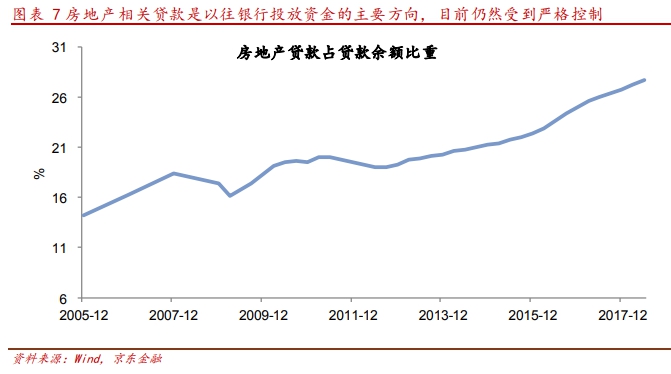 從以往情況來(lái)看,房地產(chǎn)與地方融資平臺(tái)是銀行貸款的重要流向。房地產(chǎn)方面,源于房?jī)r(jià)螺旋式攀升帶動(dòng)房地產(chǎn)相關(guān)貸款可承受的資金成本要高于一般實(shí)體投資,且有充分的抵押品,故而一直是銀行貸款的重要流向。同時(shí)地方融資平臺(tái)、國(guó)有企業(yè)貸款也相對(duì)容易,主要與其享有隱形擔(dān)保有關(guān),往往呈現(xiàn)出預(yù)算軟約束的特征。